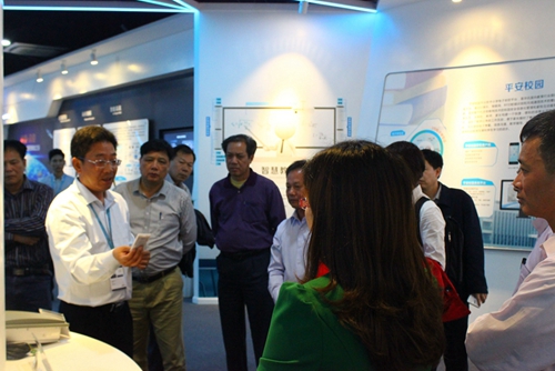 4月14日,肇慶市鼎湖區教育局陸小文局長、區涯書記一行19人來我公司參觀考察,在集團高級副總裁唐永建、物聯云技術事業部總經理沈訓明的帶領下,陸局一行參觀了集團的展廳,現